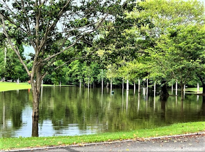 While the John Ring sign did the job, along came monsoonal rain , fronds began to fall , the sign almost blew down overnight , but was placed back in position because the sun began to shine . Then it started to rain again. The big event could take place any day now .